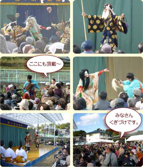 神楽1部は「那須野ヶ原」です。神楽の途中でデイケアの利用者さんが作った700個のお餅が配られ、みなさんとても喜ばれていました。