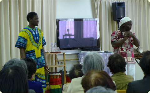初めてみる楽器に皆さん興味津々。エピゾさんが楽器の紹介をするたびに質問が飛び交いました。それを日本語で一生懸命になって説明をするエピゾさんの優しさが印象的でした。